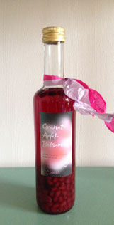 Granatapfel-Balsamico selber hergestellt und etikettiert