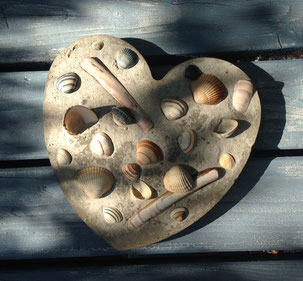 mit gesammelten Muscheln von den Ferien
